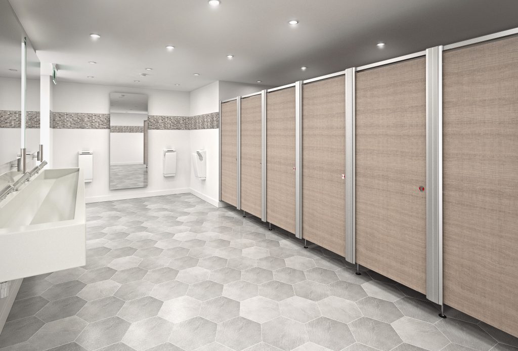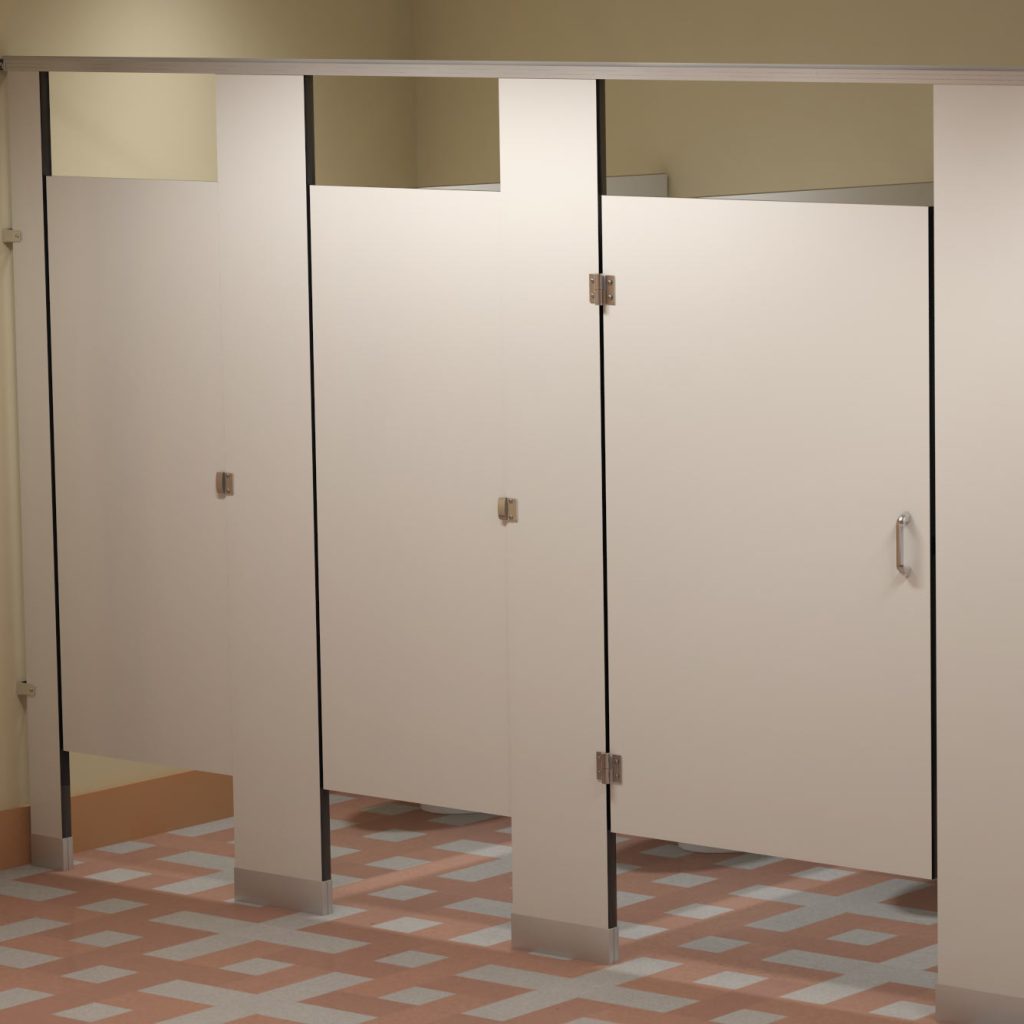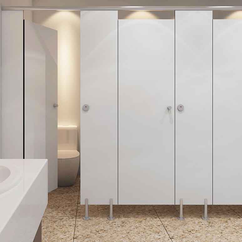 Pintu cubicle phenolic ini dipadukan dengan dinding kamar mandi secara langsung sehingga tampilannya lebih cantik.